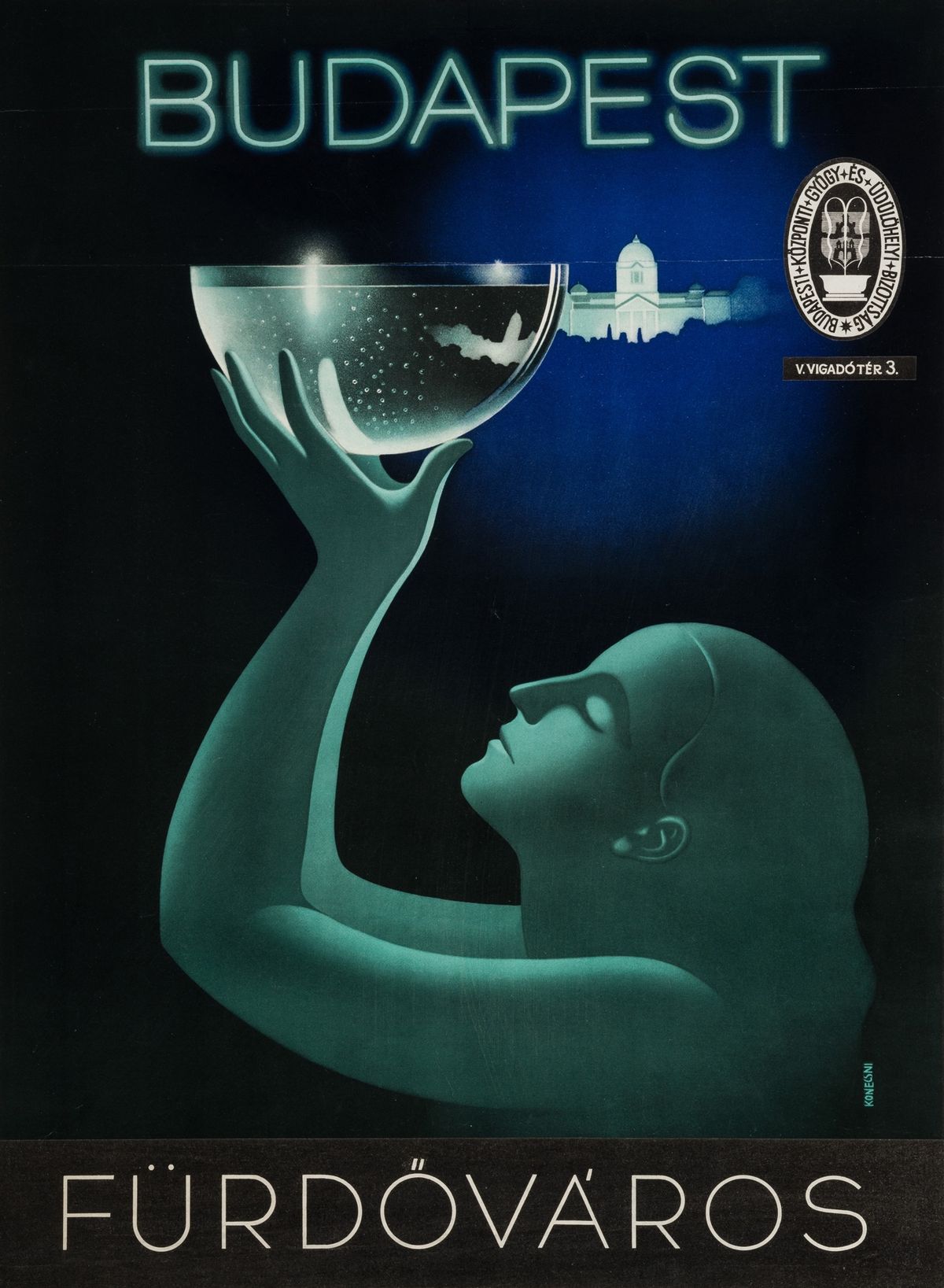 Konecsni György műve, a „Budapest fürdőváros” plakát egyfajta nyári csábításként működött már a harmincas években is. A színek, a hullámok, a napsütés mind arra invitálták a városlakót és a turistát, hogy fedezze fel a főváros fürdőinek kincseit. Nem egyszerű brosúra volt ez, hanem igazi vizuális meghívó, amelyik azt súgta: „Budapest nem csak főváros, hanem wellness-paradicsom is” Mindezt még azelőtt, hogy a wellness szót ismerték volna.