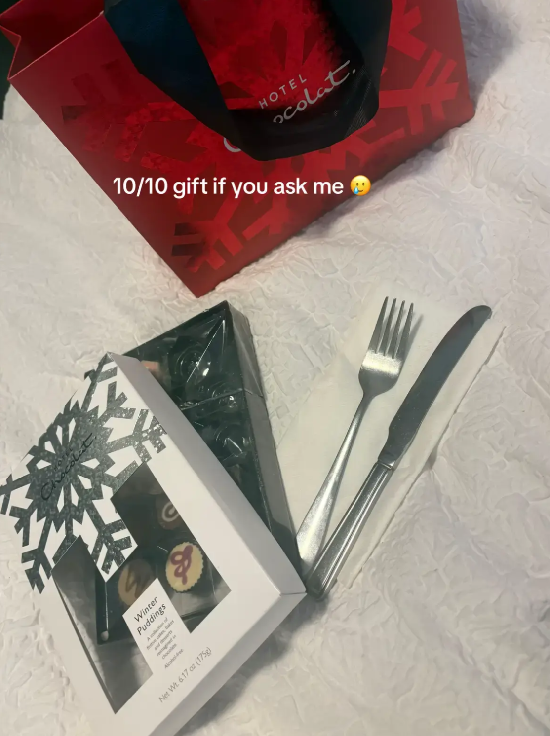 Egy amerikai tiktoker videóban osztotta meg, hogy milyen ajándékot kapott a céges karácsonyi bulin: a kollégája egy félig megevett bonbonnal lepte meg, amihez egy kést és egy villát is csomagolt. Bár a lány jót nevetett a pofátlan ajándékon, a kommentelők nem voltak ilyen kegyesek: szerintük ez a meglepetés felér egy zaklatással.
