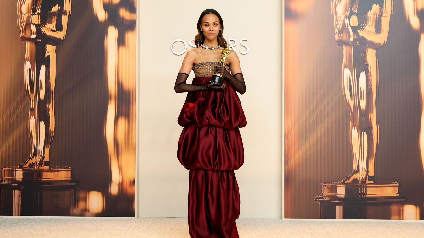 A vörös szőnyeges képeket elnézve mi is ábrándoztunk már legalább egyszer arról, hogy miben vennénk át a jól megérdemelt Oscar-díjunkat és bár konkrét elképzelés még nem körvonalazódott, az egészen biztos, hogy nem egy olyan förmedvényben, mint amiben Zoe Saladana tette. Ez a Saint Laurent semmilyen szinten nem szolgálja ki a gyönyörű színésznőt és nagyjából úgy fest, mintha egy ötéves készítette volna.