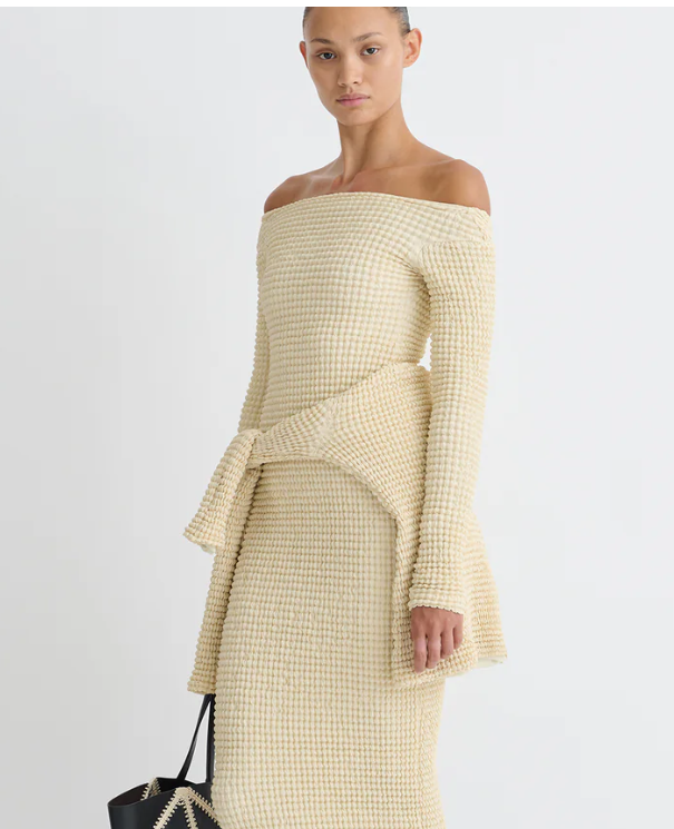 A lista legkülönlegesebb darabja ez a szoborszerű üvegpuplin ruha, ami bármilyen eseményen megállja a helyét és remekül mutatja, hogy télen nem csak feketét kell viselni!