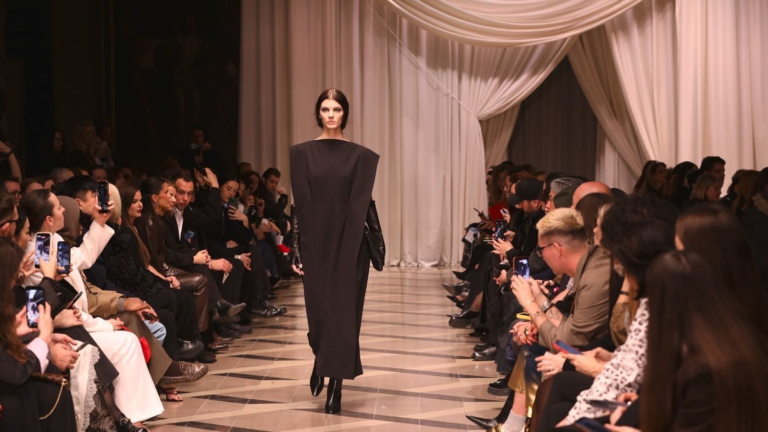 A téli szezon ruháiban a gyapjúszövet és az újrahasznosított selyem kapta a legnagyobb figyelmet – ezeket a textúrákat pedig kézi nemezeléssel és egyedi kézi festési technikák segítségével tették még izgalmasabbá. Emiatt a ruhákban egyfajta harmonikus kettősséget figyelhettünk meg mind az egymást kiegészítő matériák, mind a formáik között.